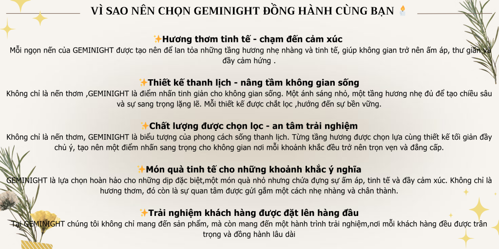 Mùi hương rất dễ chịu, không hề nồng gắt như nhiều loại nến khác. Khi đốt lên, hương thơm lan tỏa nhẹ nhàng khắp phòng, tạo cảm giác ấm áp và thư giãn. Đặc biệt, mùi hương giữ được sự tinh tế, không gây khó chịu hay nhức đầu, rất phù hợp để sử dụng khi nghỉ ngơi, đọc sách hoặc làm việc.