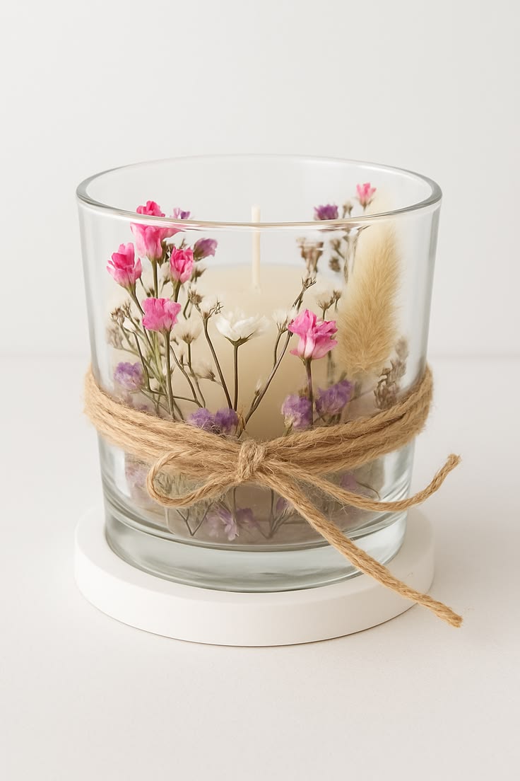 - Thiết kế tinh tế: Lọ thủy tinh quấn dây thừng trắng, mang phong cách boho và gần gũi thiên nhiên.